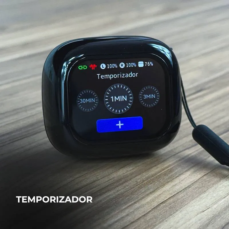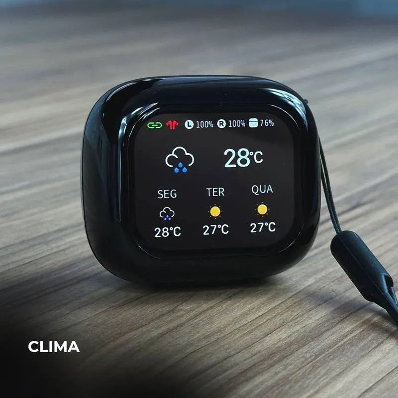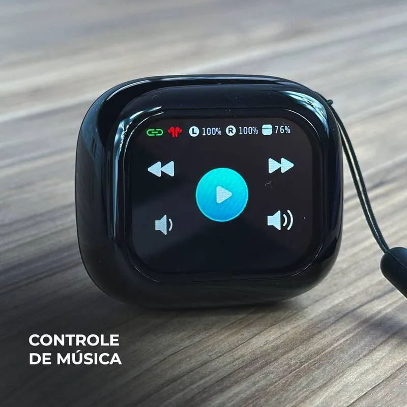 Novos fones WT-7, são fones para quem procura algo fora do comum. Fone bluehtooth com ANC( Cancelamento de Ruído). Com uma Smart Case funcional de tela LCD 2.01’’ permitindo que você tenha mais controle sobre tudo, e pareado ao celular você consegue ter localização em tempo real, passar e pausar música, receber as principais notificações fazer ligações. Tudo isso direto na case, e muitoo mais…
